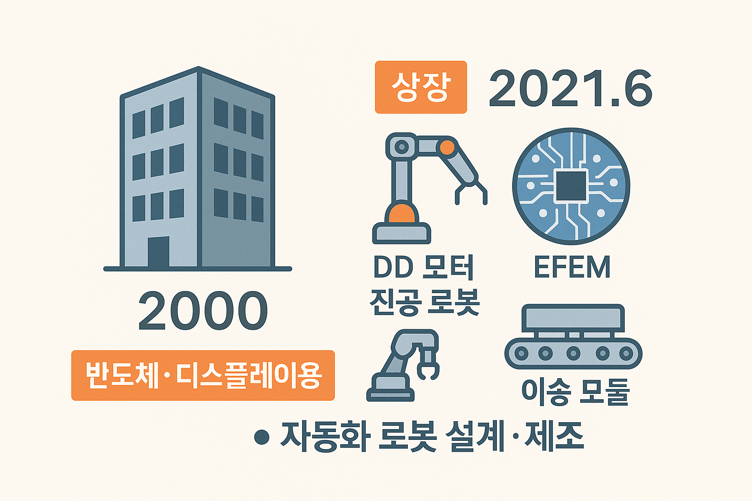 - 주요 제품: 반도체 및 디스플레이용 진공 로봇, EFEM(Front End Module), 이송 모듈