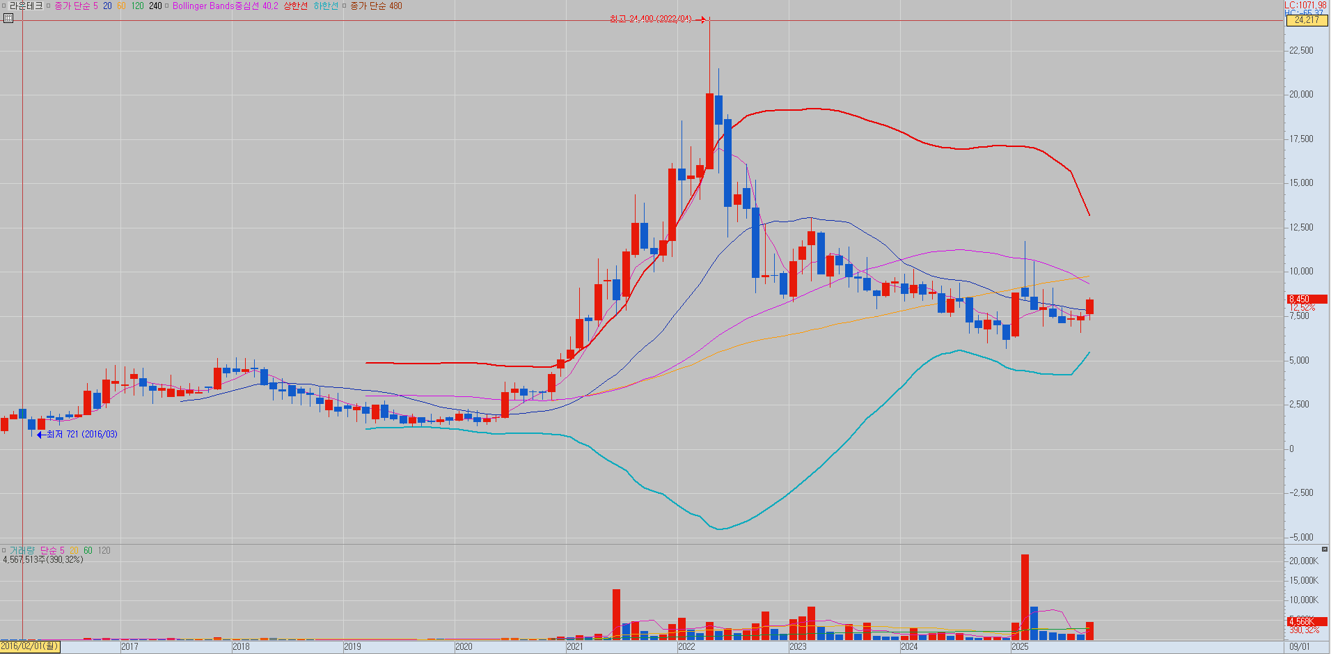 라온테크 주가 흐름은? (2025년 9월 기준)