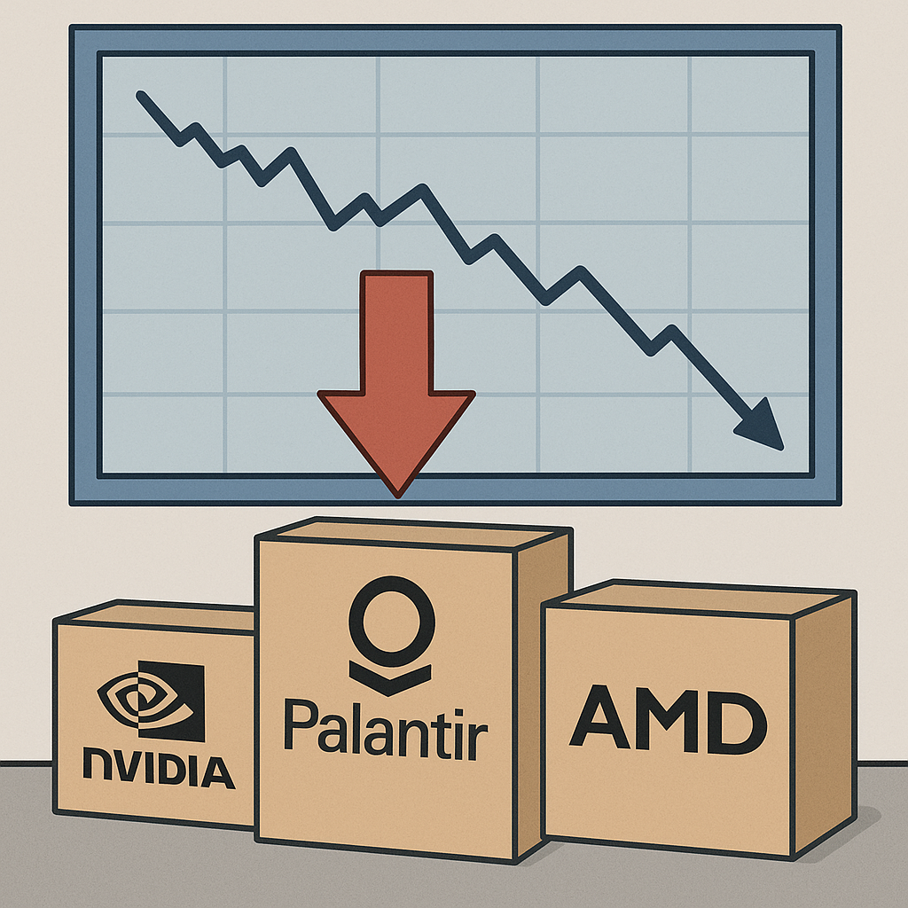 그런데 이번 2025년은 분위기가 다릅니다. 실제로 나스닥은 지난 며칠간 기술주 중심으로 급락했고, 대표적인 AI 수혜주인 Nvidia는 3.5% 이상 하락했습니다. Palantir, AMD 같은 종목들도 마찬가지로 조정을 받았고요.